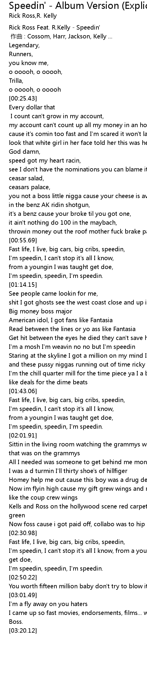[00:-05.00] Rick Ross Feat. R.Kelly - Speedin'