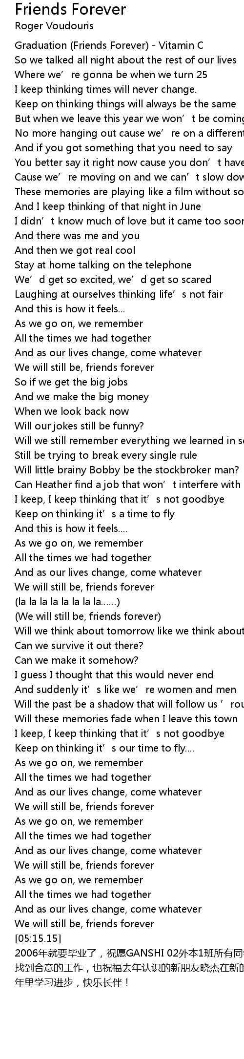 | [00:10.72] | Graduation Friends Forever Vitamin C |