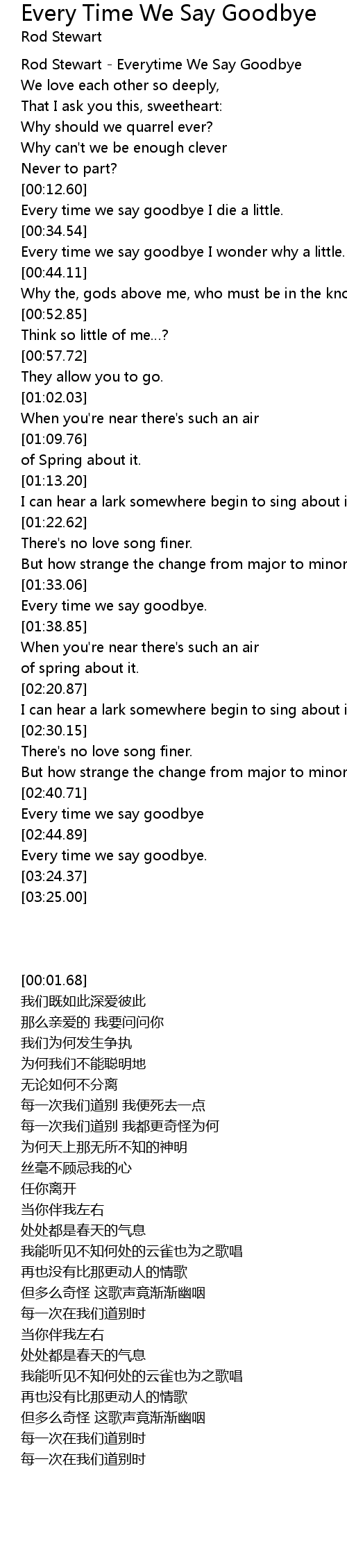 | [00:01.68] | Rod Stewart - Everytime We Say Goodbye |
