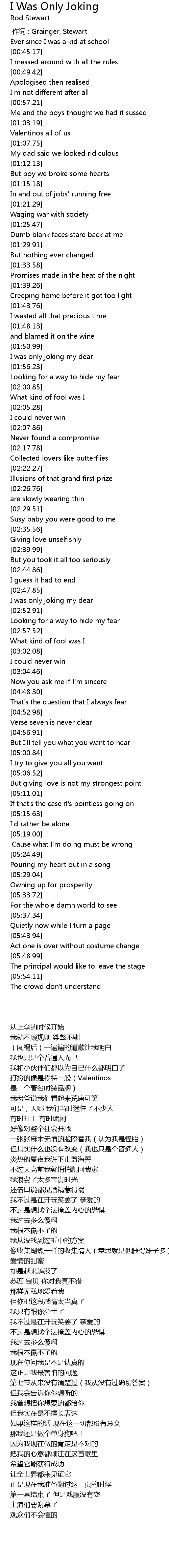 | Song | I Was Only Joking |