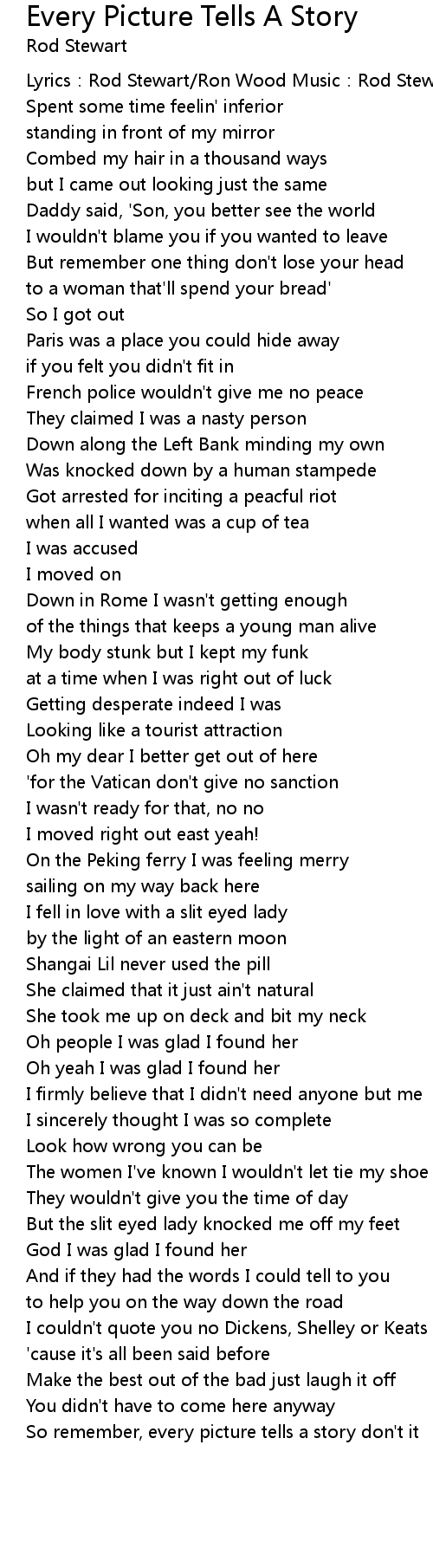 | So remember, every picture tells a story don't it |