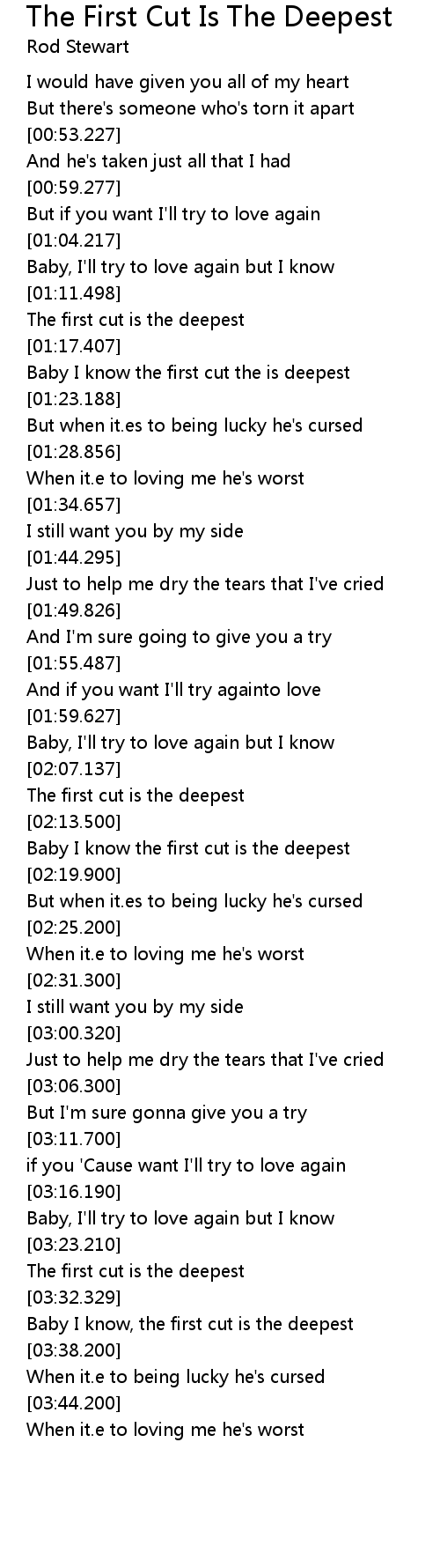 | [02:14.380] | Baby I know the first cut is the deepest |