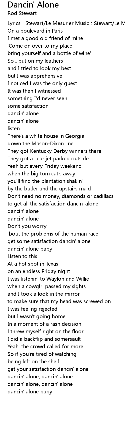 | to get all the satisfaction dancin' alone | |