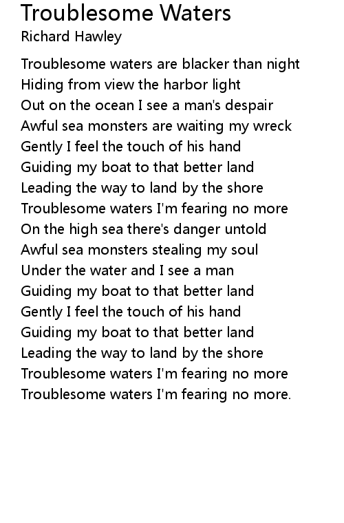 Troublesome waters I'm fearing no more. |