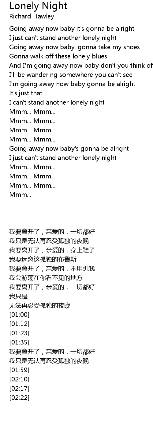 I can't stand another lonely night |