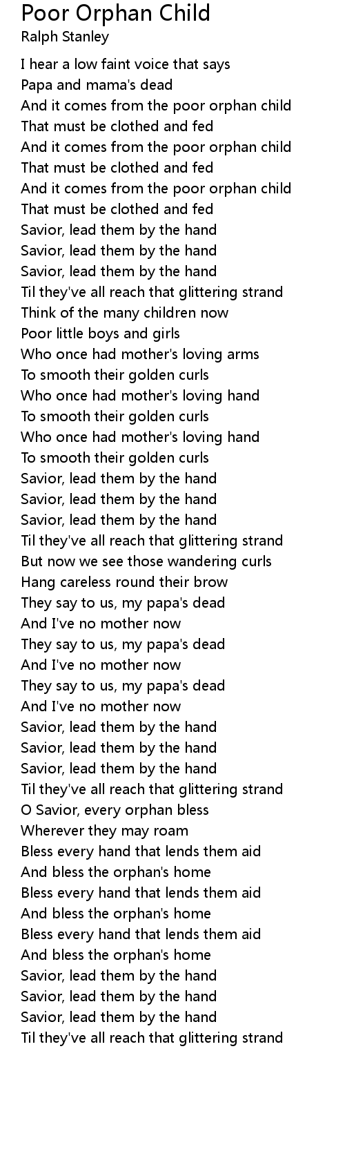 And it comes from the poor orphan child |