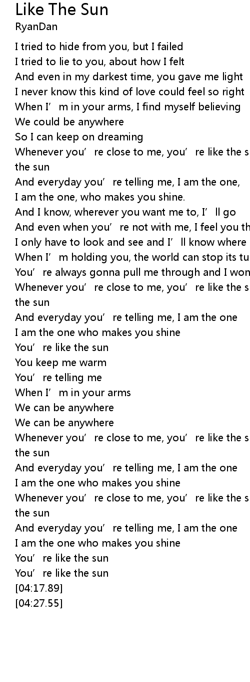 | [03:11.43] | Whenever you’re close to me, you’re like the sun, you feel like the sun |