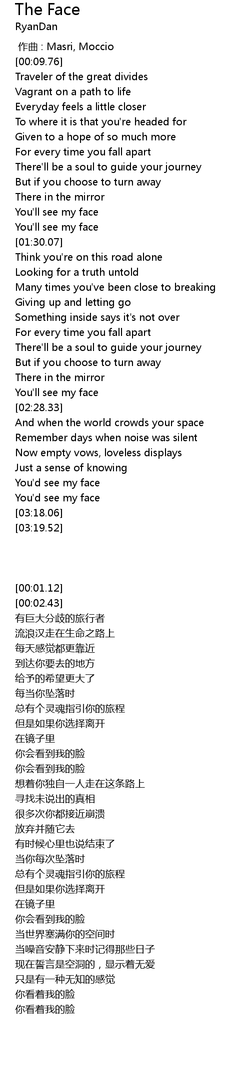 | [01:17.00] | You'll see my face |