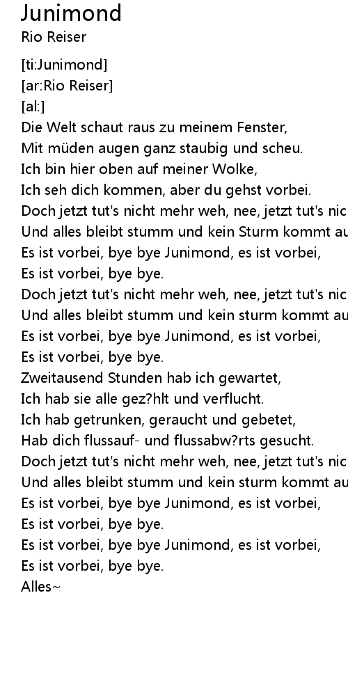 | [00:37.04] | Es ist vorbei, bye bye Junimond, es ist vorbei, |