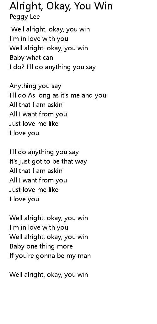 [Chorus] Well alright, okay, you win |
