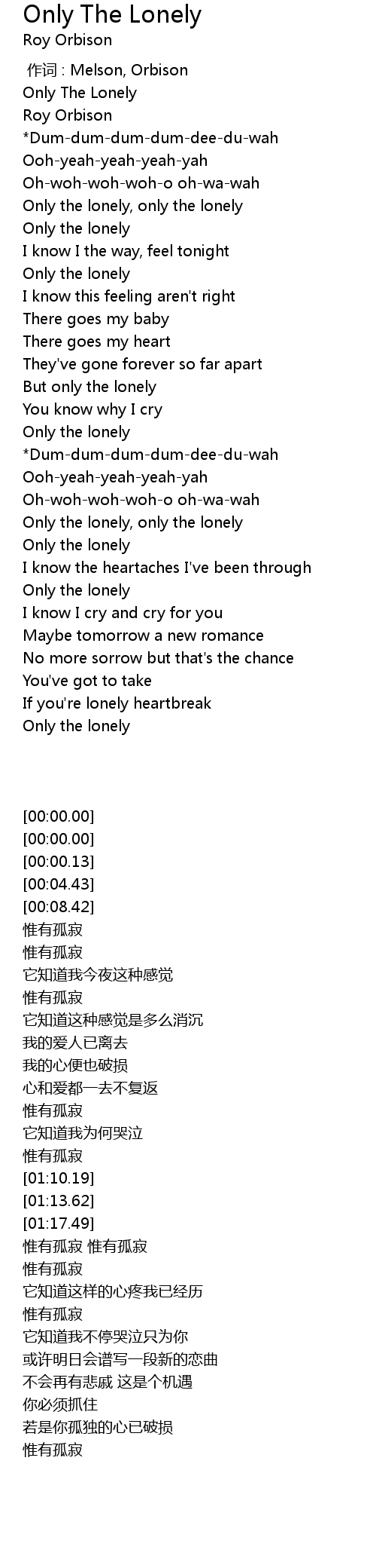 | [02:17.48] | Only the lonely |