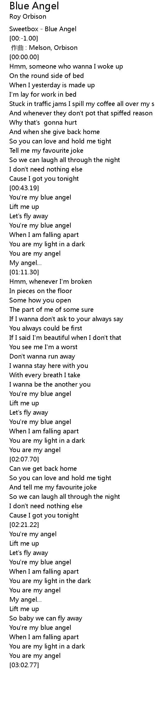 | [00:43.75] | You're my blue angel |