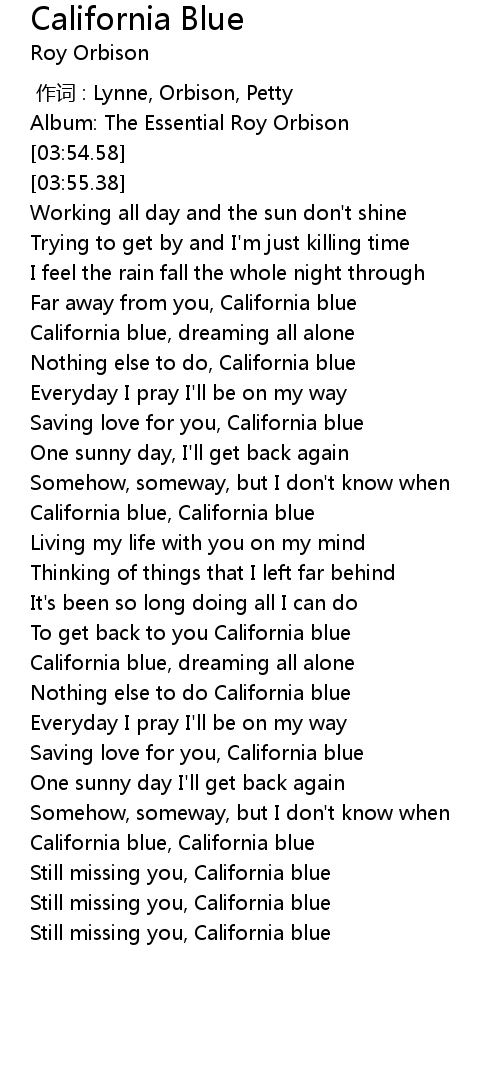 | [00:00.00] | zuò cí : Lynne, Orbison, Petty |