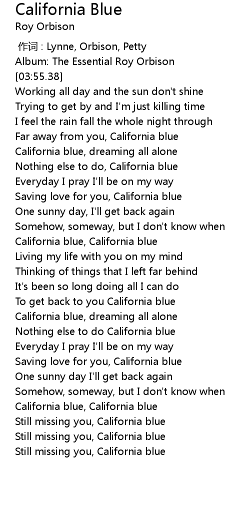 | [00:00.00] | zuò cí : Lynne, Orbison, Petty |