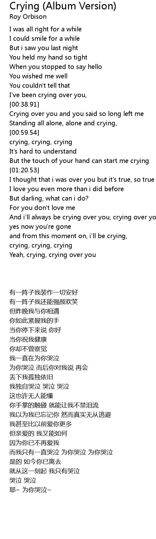 And i'll always be crying over you, crying over you |