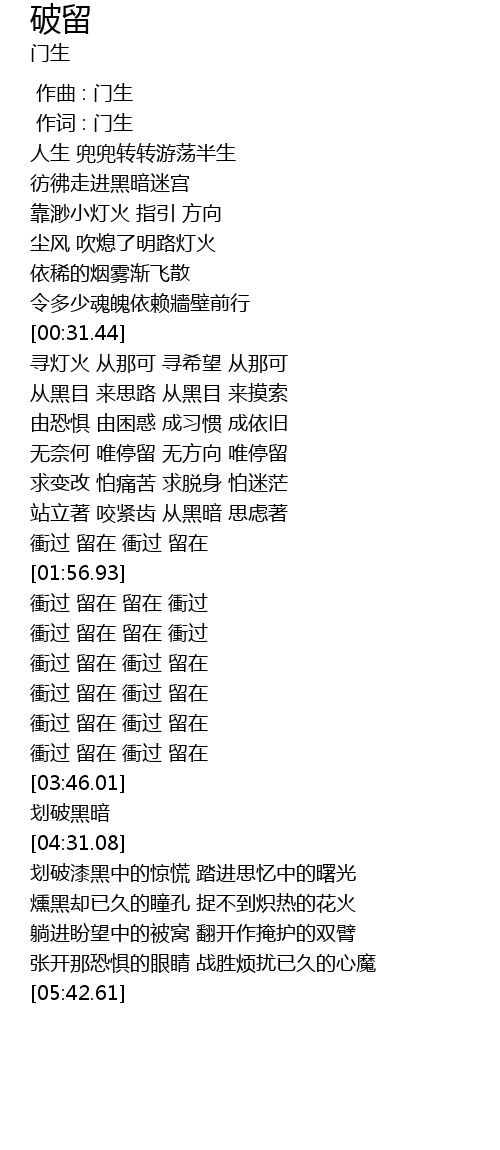| [03:26.65] | 衝过 留在 衝过 留在 |