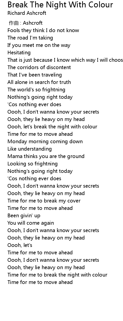 | [01:07.220] | Oooh, let' s break the night with colour |