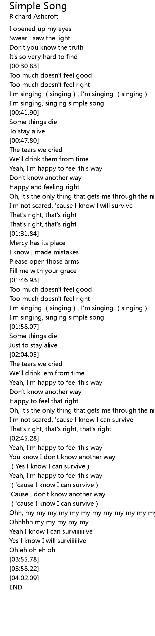 | [00:38.76] | I'm singing, singing simple song |