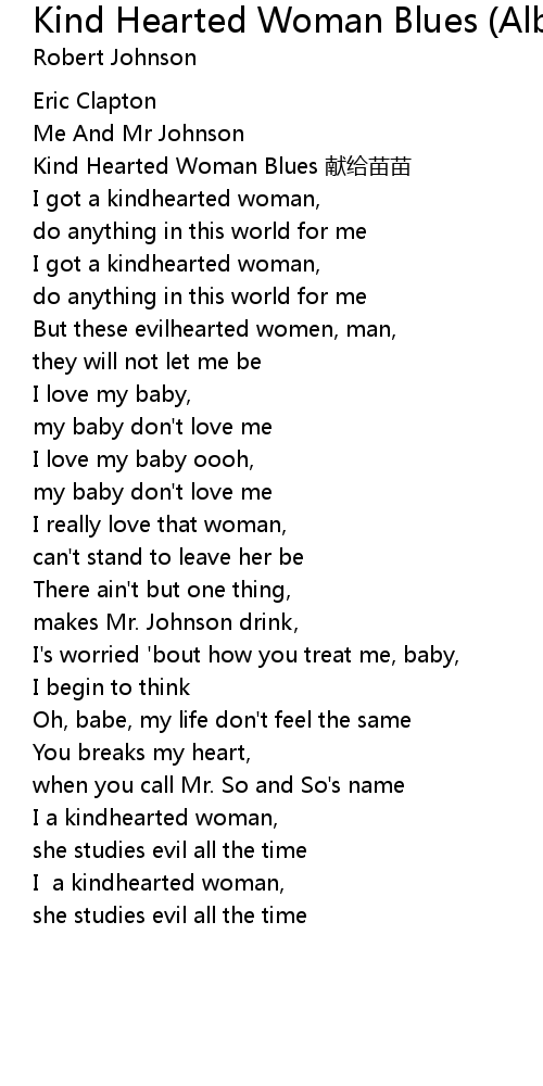 | Kind Hearted Woman Blues xiàn gěi miáo miáo | |