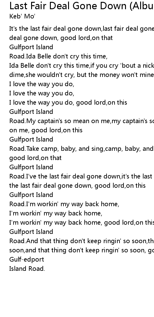 Road.I've the last fair deal gone down,it's the last fair deal gone down,it's the last fair deal gone down, good lord,on this |