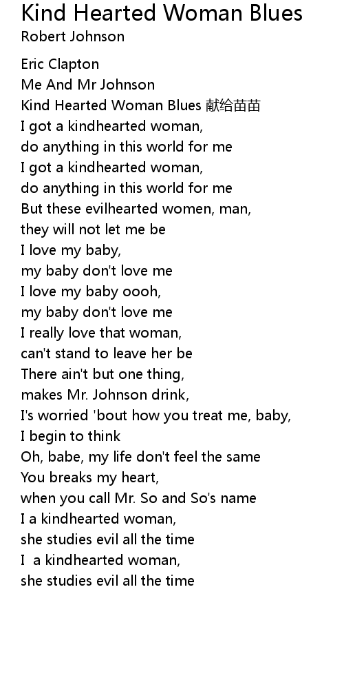 | Kind Hearted Woman Blues 献给苗苗 | |