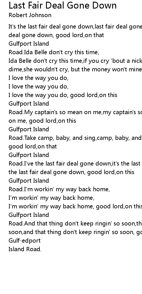 Road.I've the last fair deal gone down,it's the last fair deal gone down,it's the last fair deal gone down, good lord,on this |