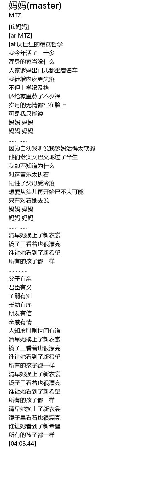 | [01:50.10] | 妈妈 妈妈 |