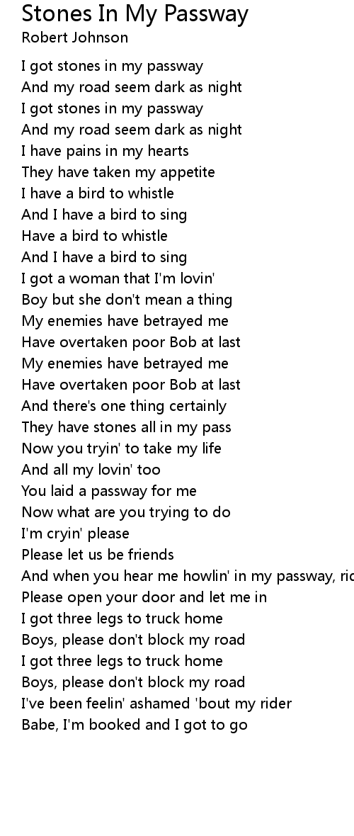 I got stones in my passway |
