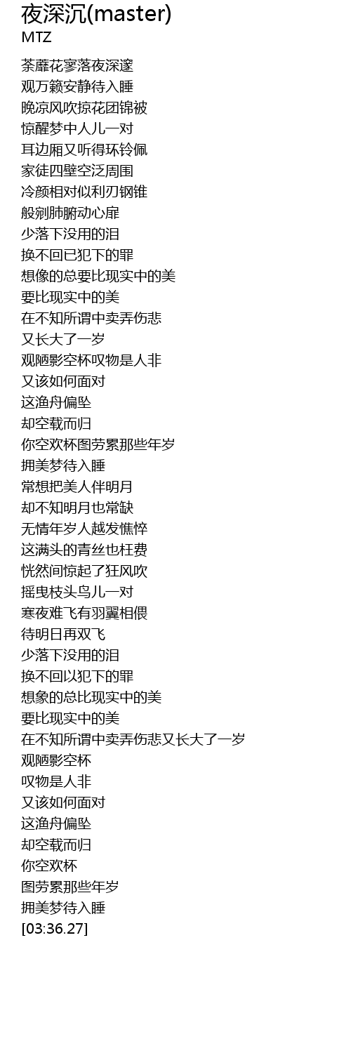 | [00:34.36] | 荼蘼花寥落夜深邃 |