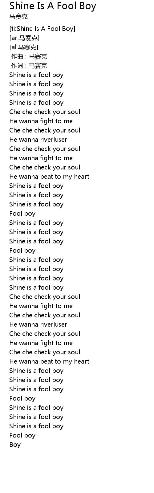 | [00:41.28] | Shine is a fool boy |