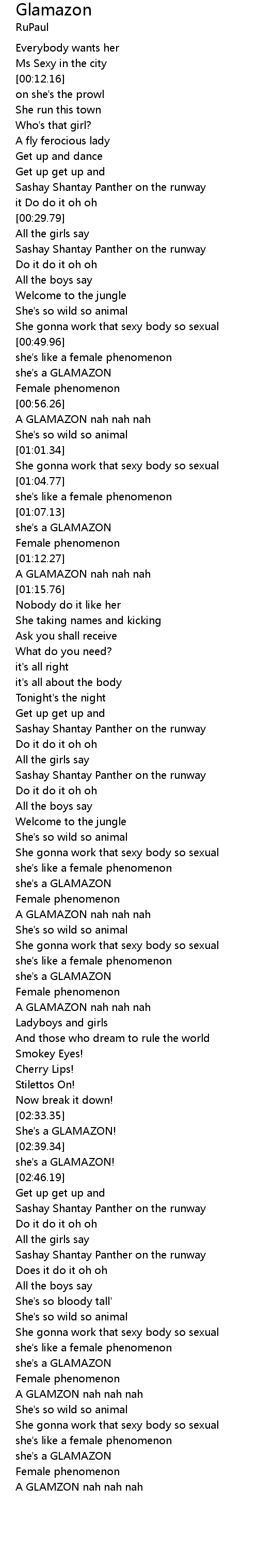 | [00:57.90] | A GLAMAZON nah nah nah |