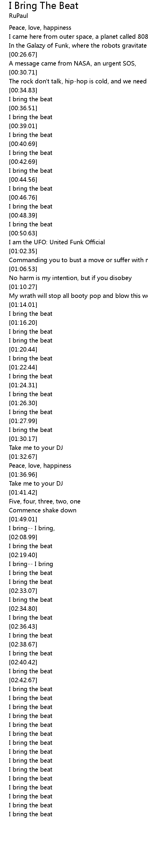 | [02:41.86] | I bring the beat |