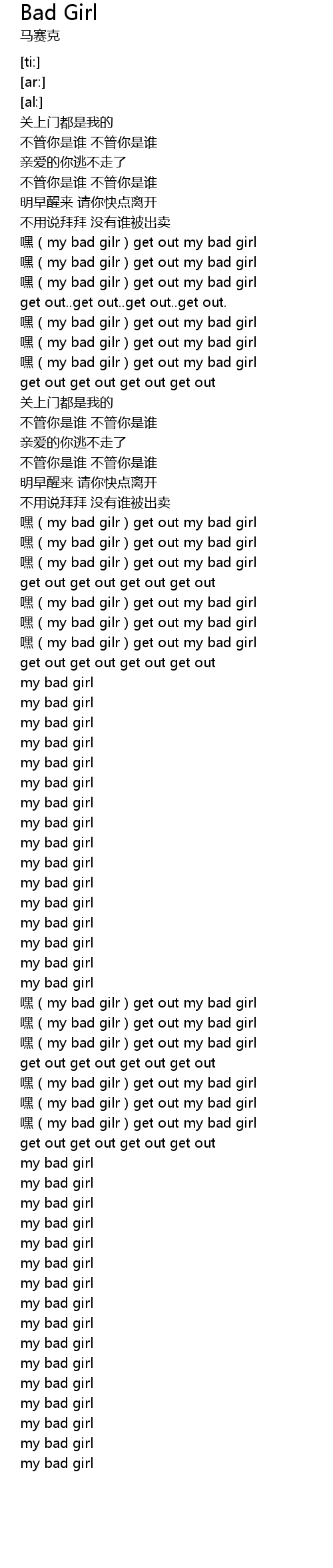 | [00:59.04] | hei my bad gilr get out my bad girl |