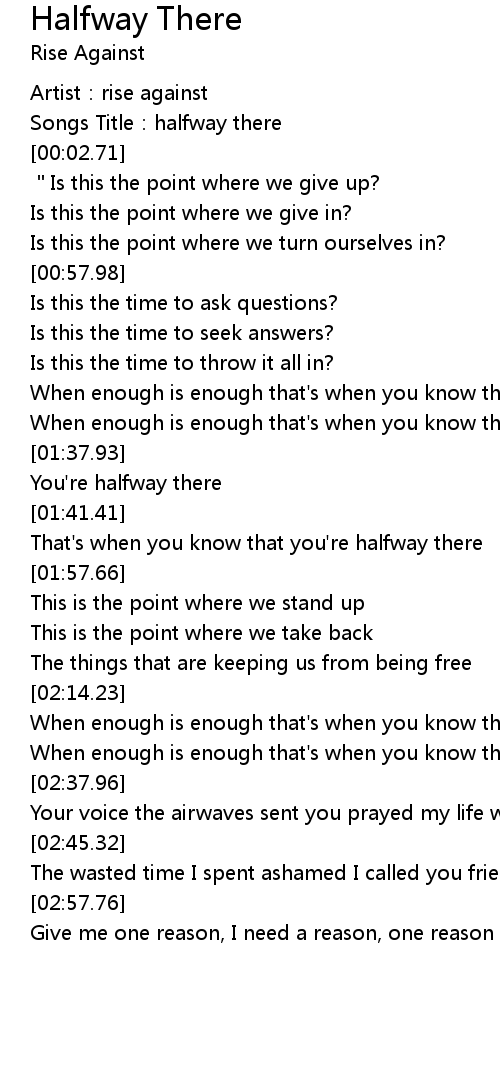 | [02:26.98] | When enough is enough that's when you know that you're halfway there |