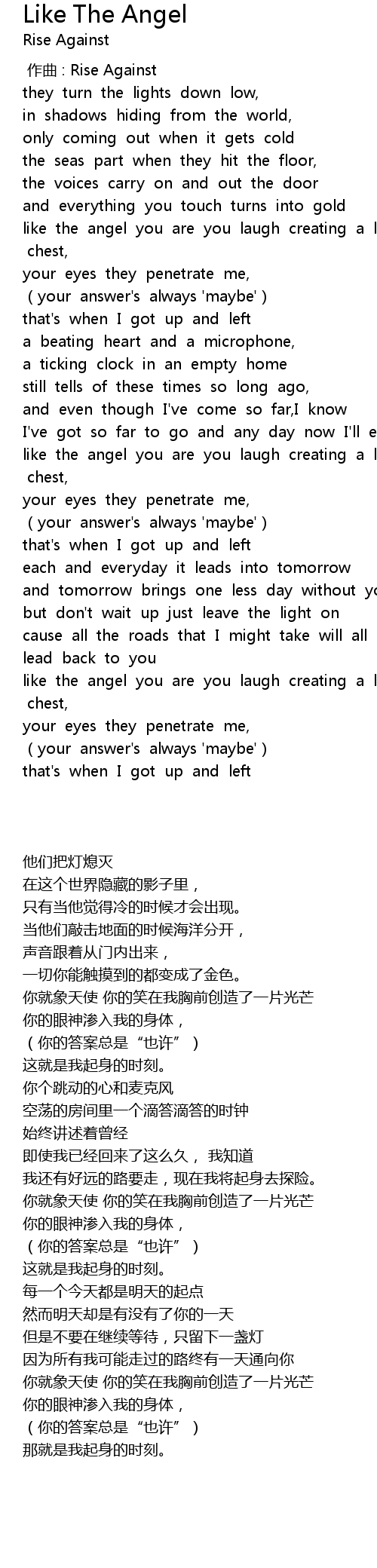 | [00:00.00] | 作曲 : Rise Against |