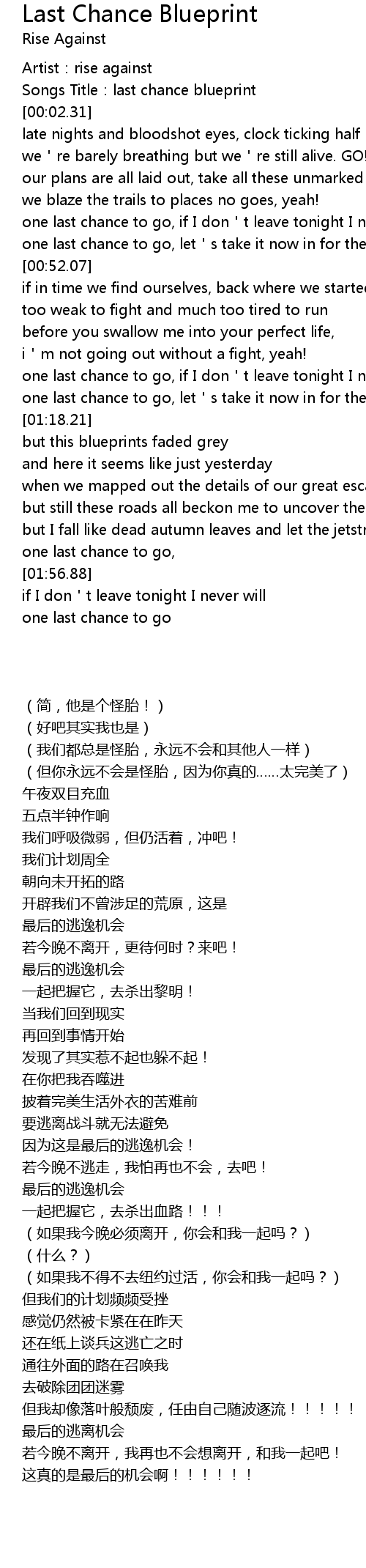 | [00:01.55] | Songs Title: last chance blueprint |