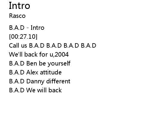| [00:48.27] | B.A.D Alex attitude |