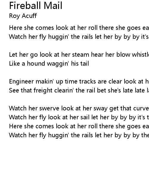 See that freight clearin' the rail bet she's late late late it's the fireball mail [ mandolin ] |