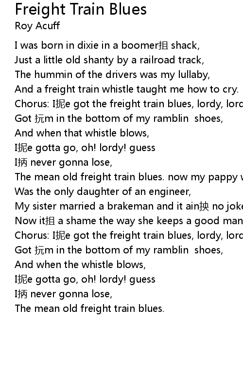 | The mean old freight train blues. now my pappy was a fireman and my mammy dear, | |