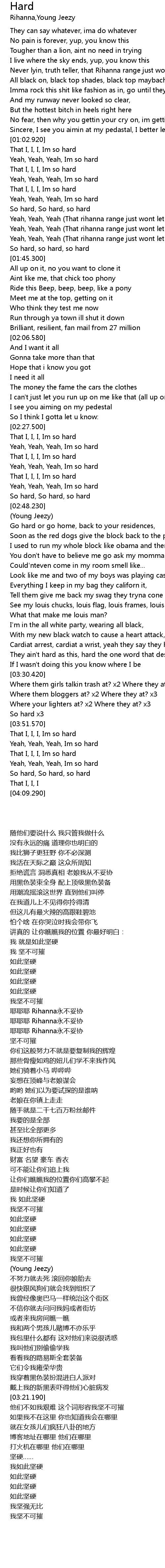| [02:35.890] | Yeah, Yeah, Yeah, Im so hard |
