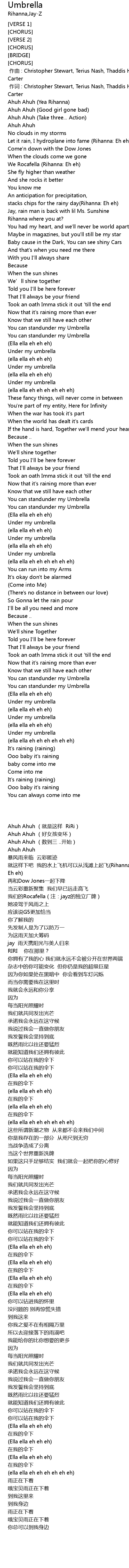 | [02:19.07] | You can standunder my Umbrella |