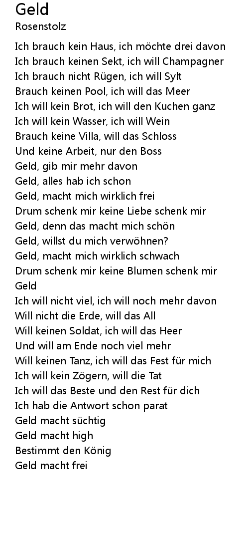 | Geld, alles hab ich schon | |