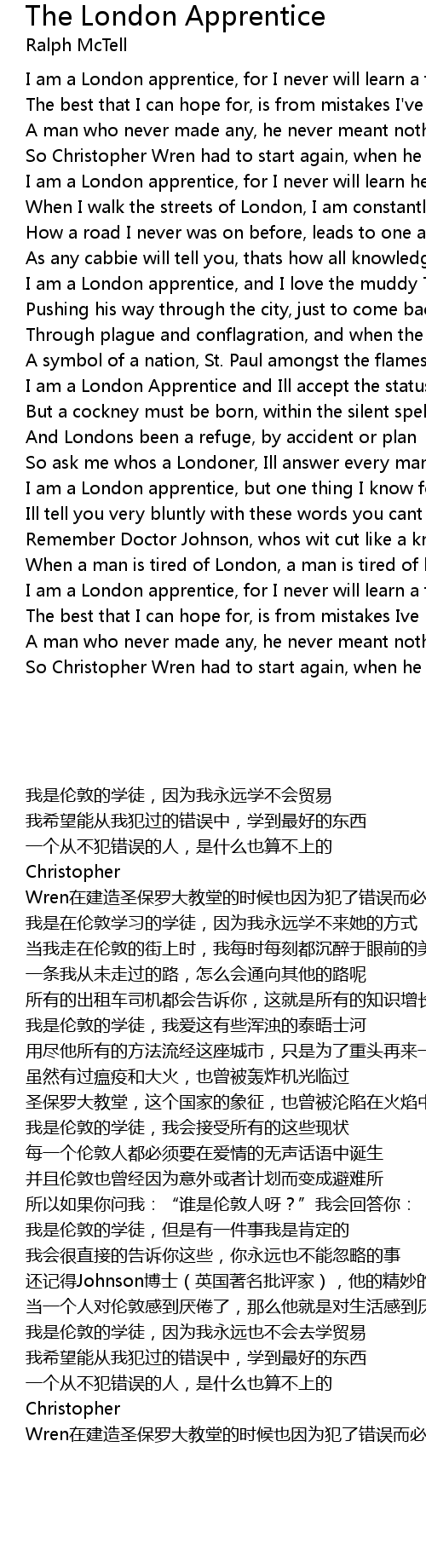 I am a London apprentice, but one thing I know for sure |