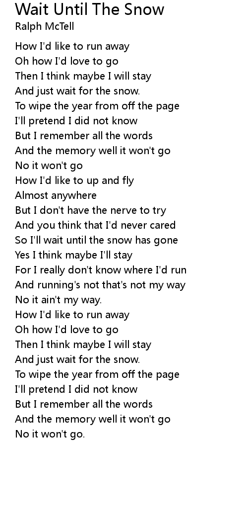 So I'll wait until the snow has gone |