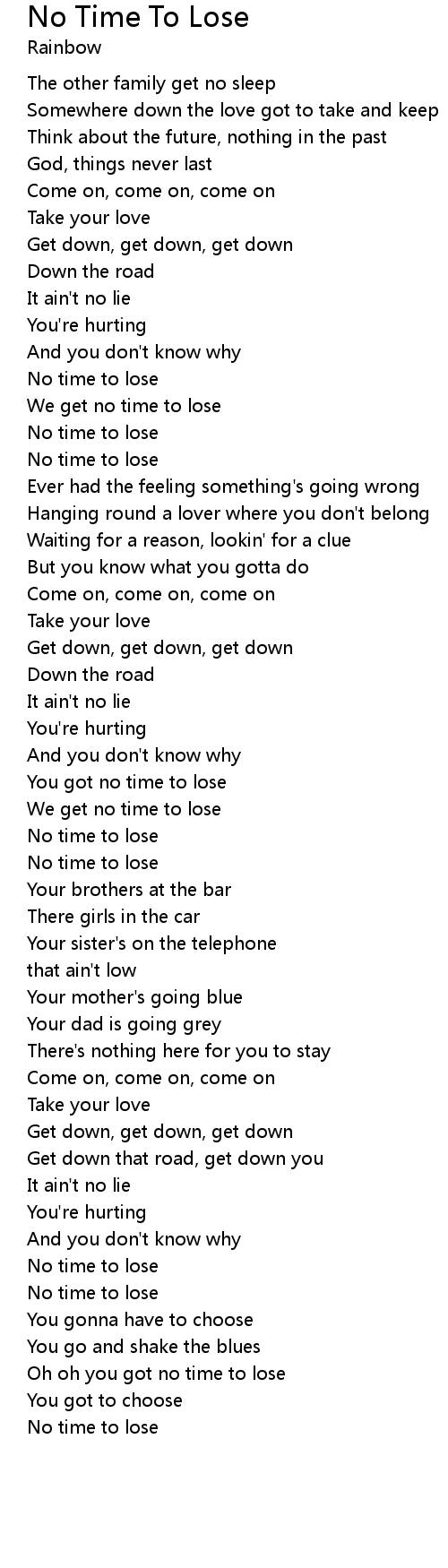 You got no time to lose |
