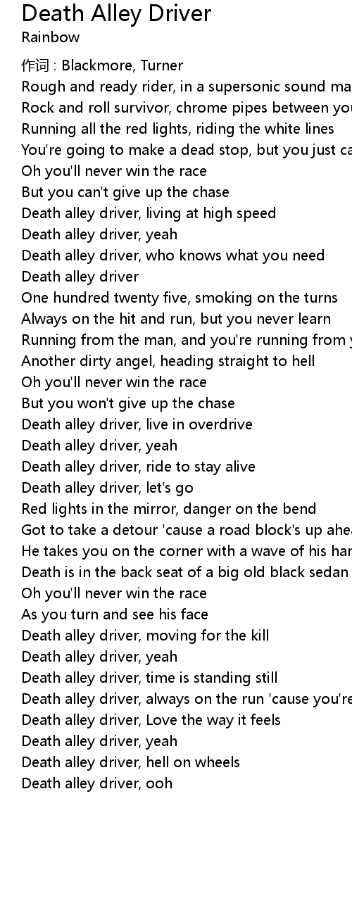 | Death alley driver, yeah | |