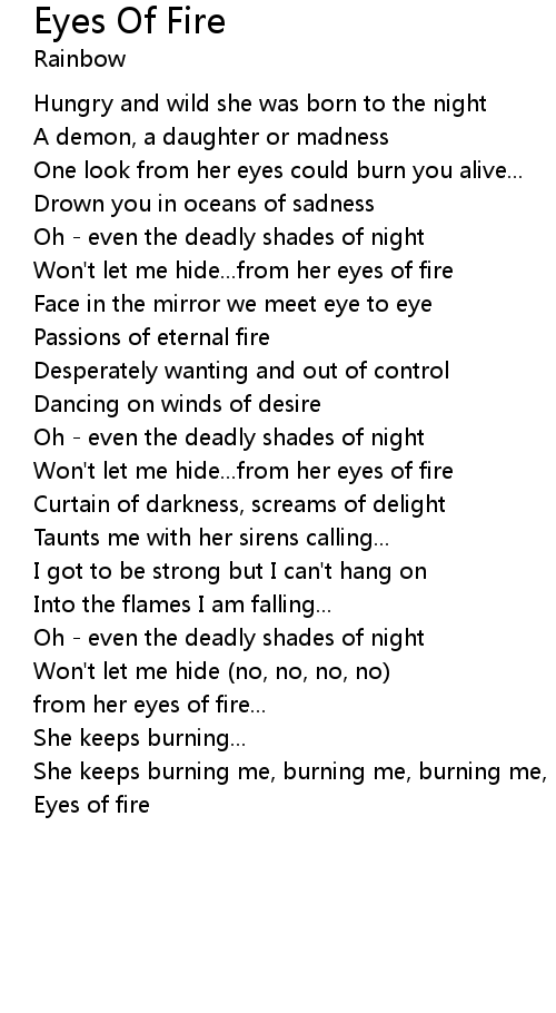 | Won't let me hide...from her eyes of fire | |