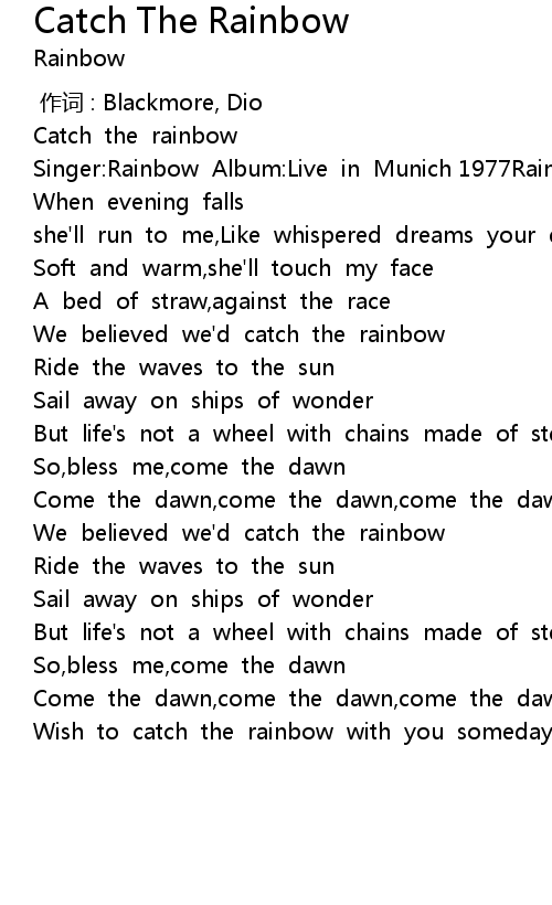 | [00:25.67] | Singer: Rainbow Album: Live in Munich 1977Rainbow |