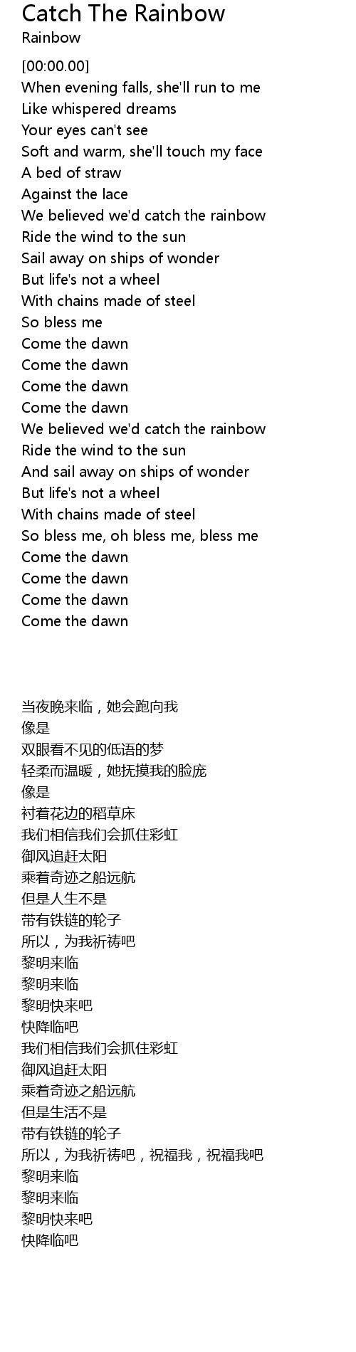 We believed we'd catch the rainbow |