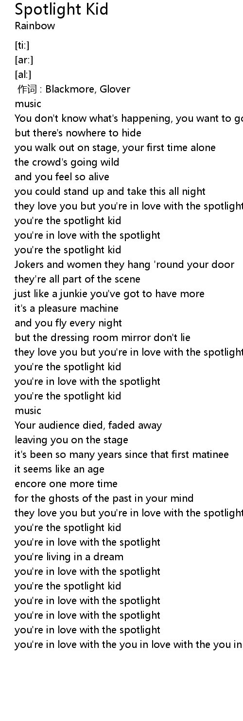 | [04:15.63] | you're the spotlight kid |